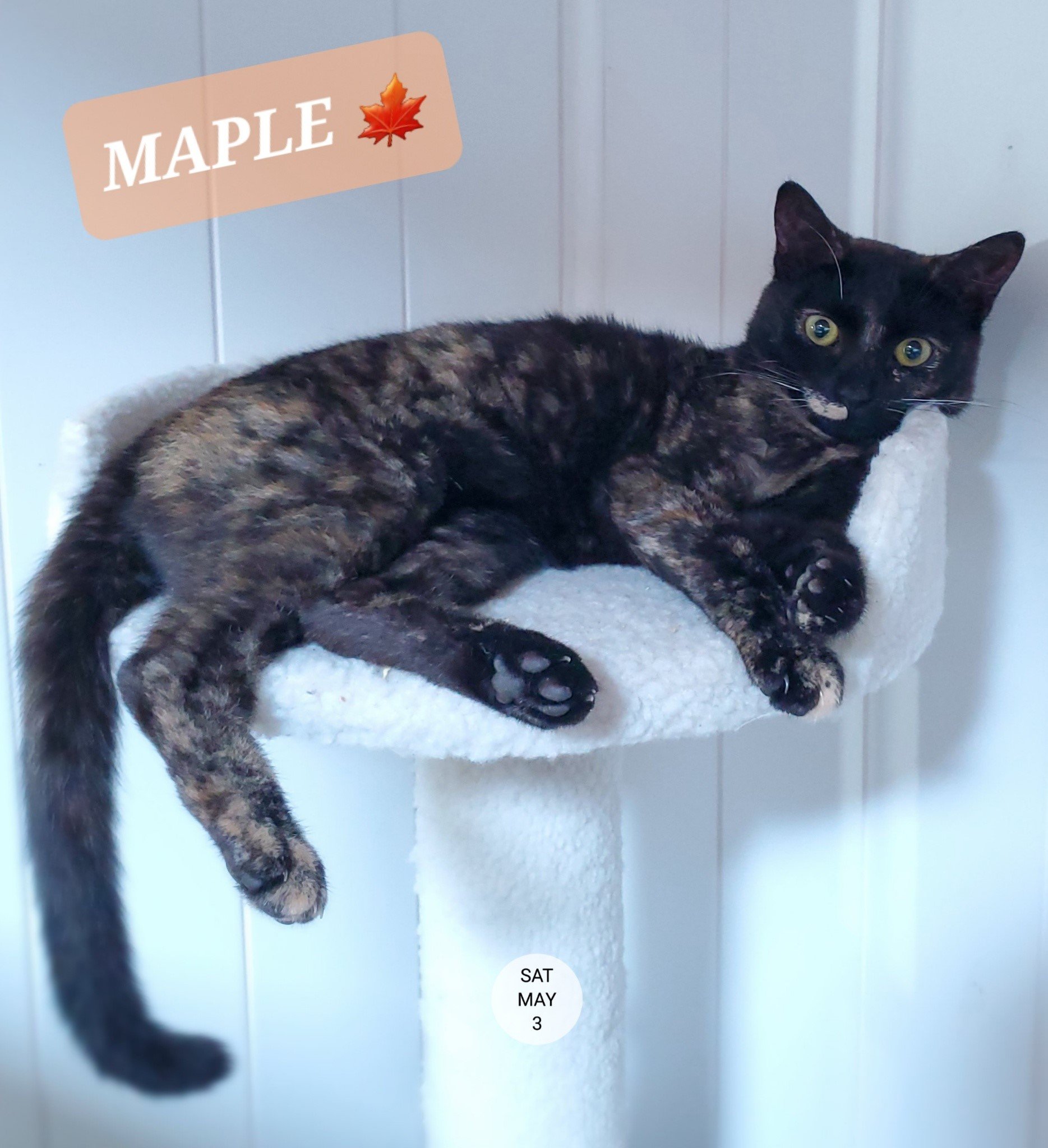 Meet beautiful Maple, a female tortie born September of 2024.